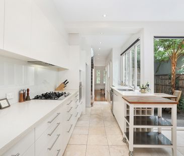 An immaculately renovated 3-level terrace in a wide leafy...