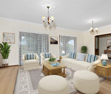 - Three bedrooms: one with built-in robe, two with split-...